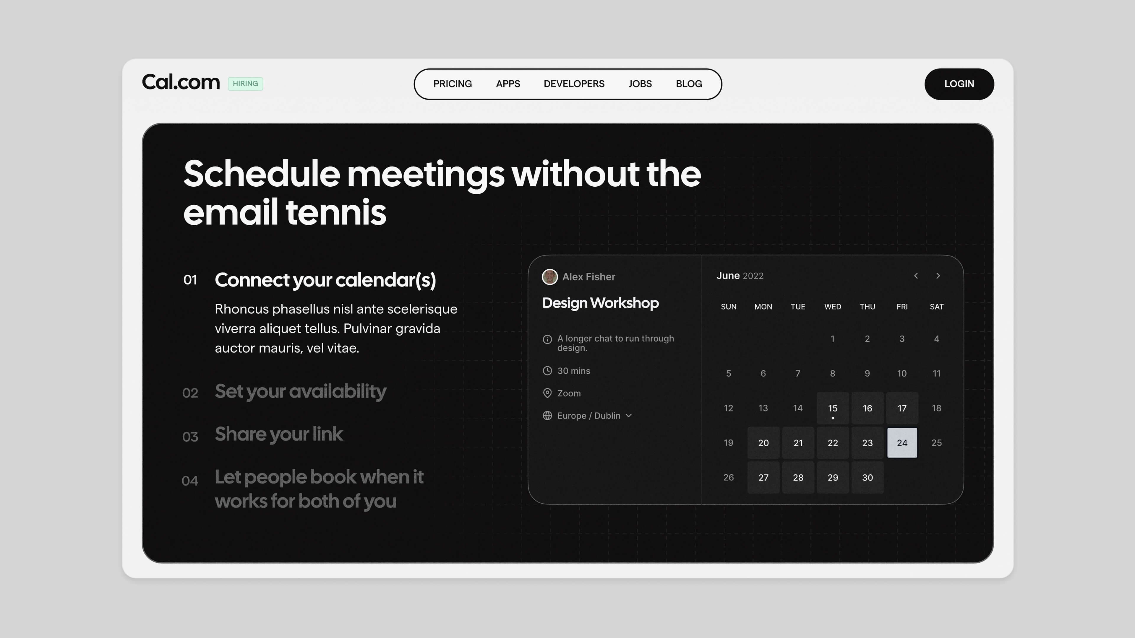 Cal is redefining scheduling, and their platform needed a website that worked as smoothly as their product. We crafted a digital experience, optimizing interactions and refining the user journey to match their mission: making time management effortless.
